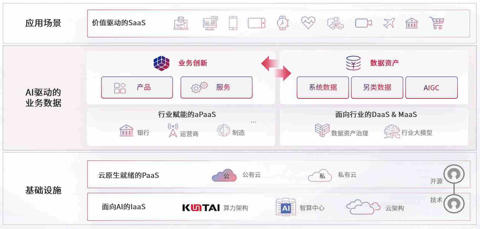 数字时代,,围绕企业数字化转型的关键要素,,,GGPOKER数码开创性的提出数云融合战略和技术体系框架,,,,着力在云原生、、、、数字原生、、、、AI原生和信创产业上架构产品和服务能力,,,为处在不同数字化转型阶段的快消零售、、、、汽车、、、金融、、、医疗、、、政企、、、教育、、、、运营商等行业客户提供泛在的敏捷IT能力和融合的数据驱动能力,,构建跨界融合创新的数字业务场景和新业务模式,,助力企业级客户建立面向未来的核心能力和竞争优势,,,全面推动社会的数字化、、智能化转型升级。。。。